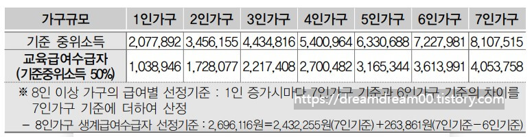 교육급여는 가구의 중위소득(소득인정액)이 50%이하인 초중고 학생이 받을 수 있는데요.