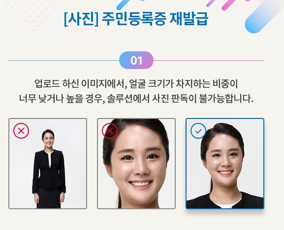 하지만 10년 전 증명사진이거나 나이가 너무 젊을 때 사진이거나 현재 모습과 확연히 차이가 많이 나는 증명사진 또는 이전 주민등록증에 있던 증명사진은 거절 당할 수 있습니다. 담당자가 6개월 전 사진이 아니라는 것을 명확히 알 수 있는 사진은 피해야 합니다.