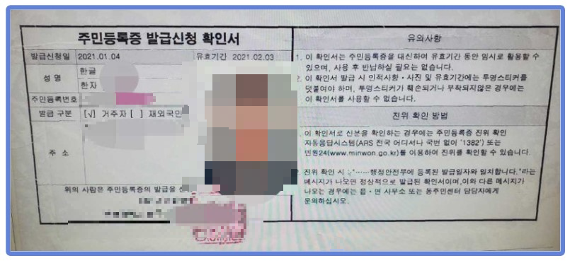 4. 임시 주민등록증(주민등록증 발급 신청 확인서)발급하기