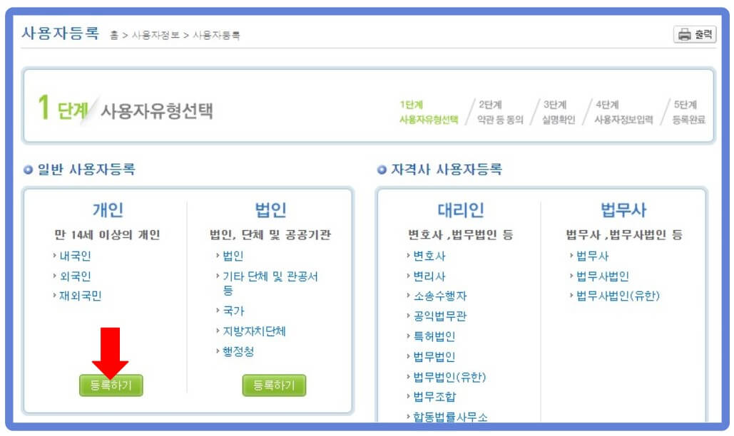 ③일반 사용자 등록에서 개인 등록하기를 선택 후 사용자 등록을 진행합니다.