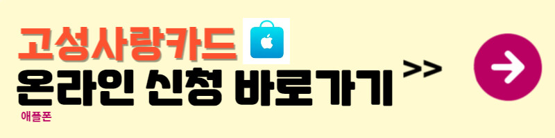 ➡️희망지원금 온라인 신청은 고성사랑카드(그리고카드)를 소지한 분만 신청할 수 있습니다. 아래링크를 통해 카드를 미리 신청하시고 신속하게 온라인으로 지원금 받으시기 바랍니다.