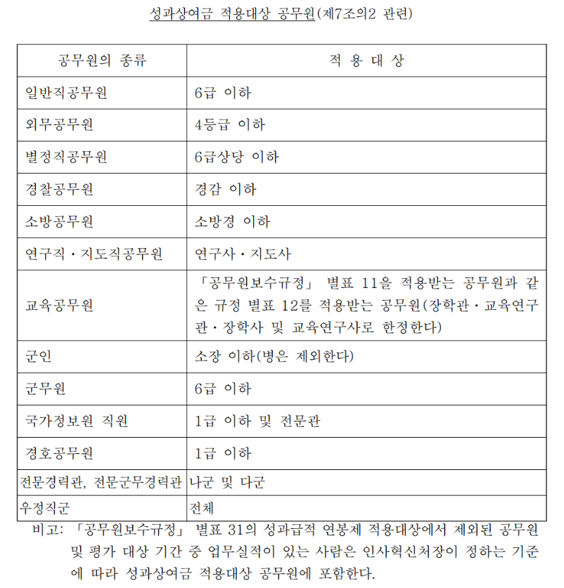 공무원 성과상여금 적용대상 → 공무원 성과상여금 지급대상 → 공무원 성과상여금 제외대상