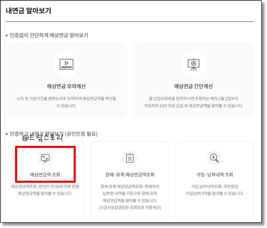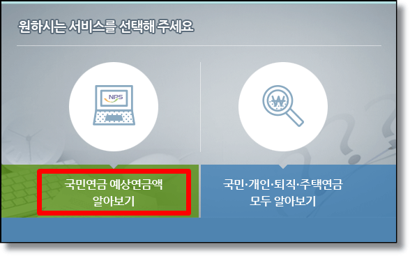 4. 국민연금 예상연금액 알아보기를 선택합니다.