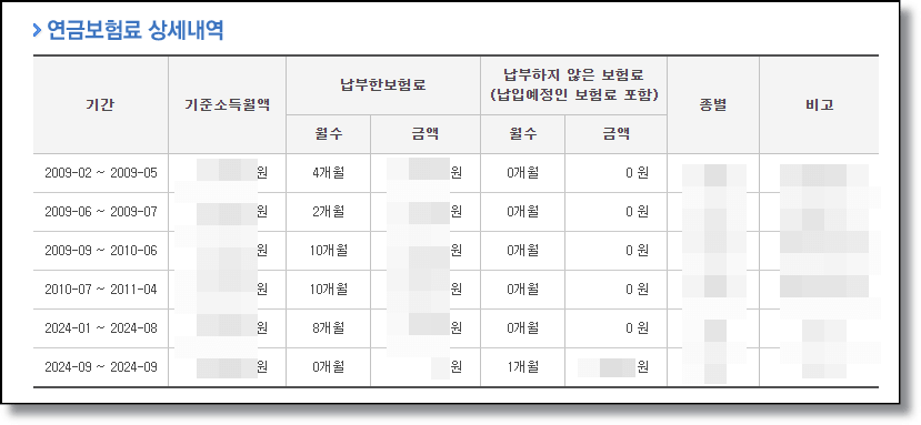 5. 국민연금 상세내역 또한 확인이 가능합니다.