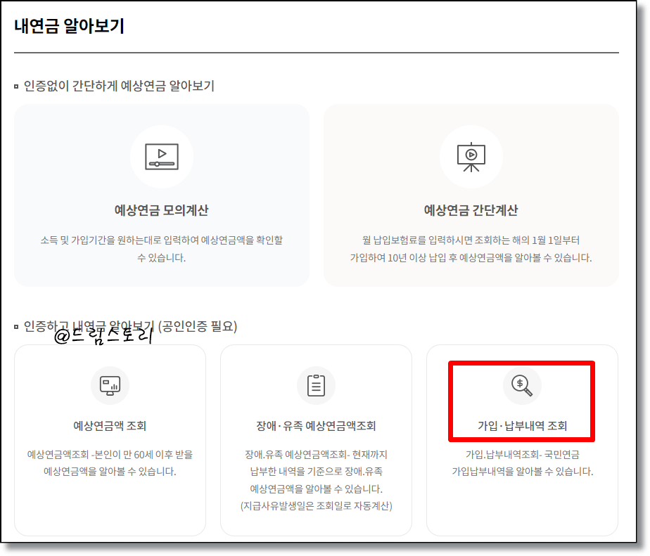3. 가입, 납부내역 조회 메뉴를 클릭합니다.