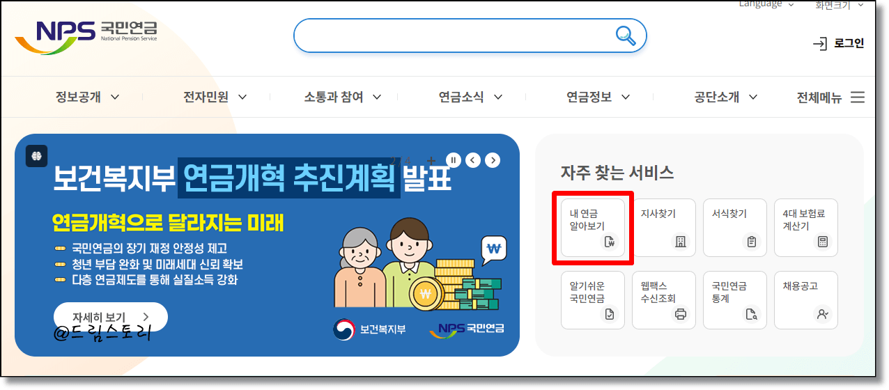1. 아래 링크를 통해 국민연금 홈페이지로 이동합니다.