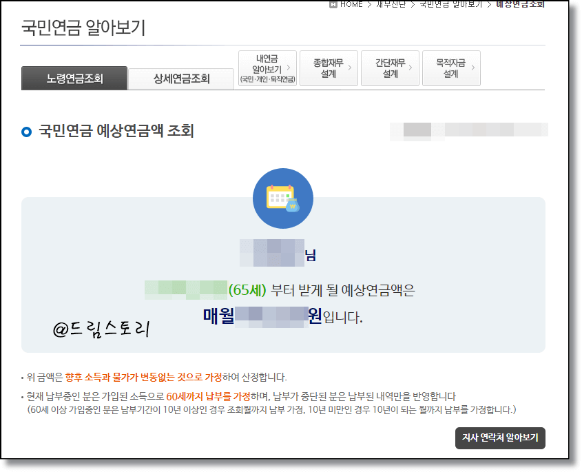 6. 국민연금 예상연금액을 확인 할 수 있습니다.