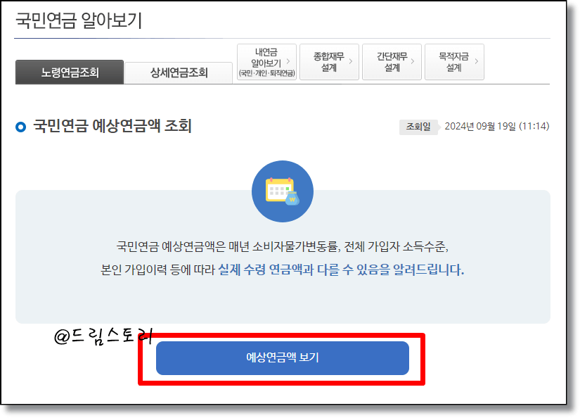 4. 국민연금 예상연금액 알아보기를 선택합니다.