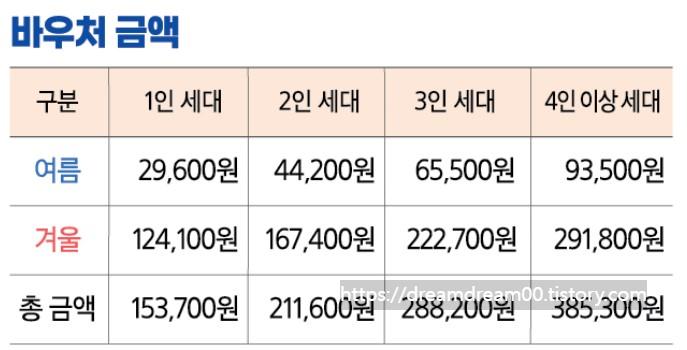 생계, 의료 - 월1만6천원 한도(여름철(7~9월) 한도2만원)