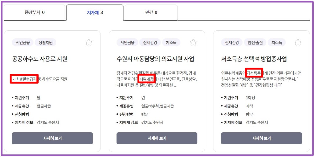 2. 기초생활수급자 지자체별 혜택 조회하기