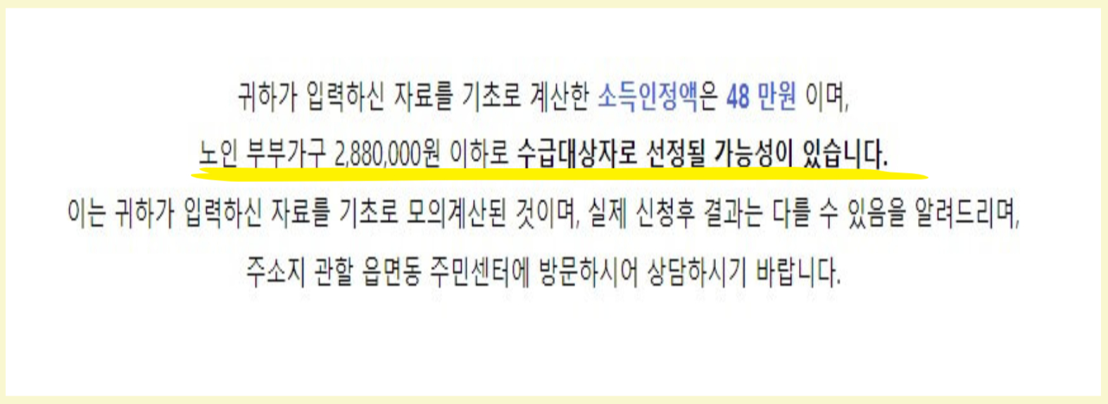 아래링크를 통해 기초연급 수급 가능여부를 바로 계산해 보시기 바랍니다.