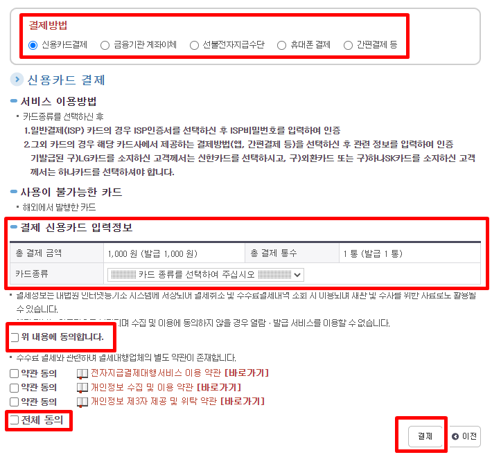 11. 결제방법을 선택해 결제를 진행합니다.