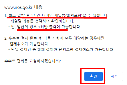 12. 등기부등본은 최초 발급 후 1시간 이내에 재열람이 가능합니다. 출력의 경우에는 1회만 출력이 가능합니다.