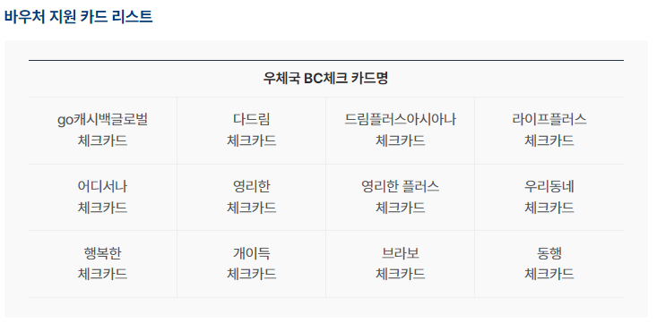 디지털 바우처를 사용하기 위해서는 BC우체국 체크카드가 있어야 하는데요. BC우체국 체크카드에 포인트 형식으로 바우처가 지급되기 때문입니다.