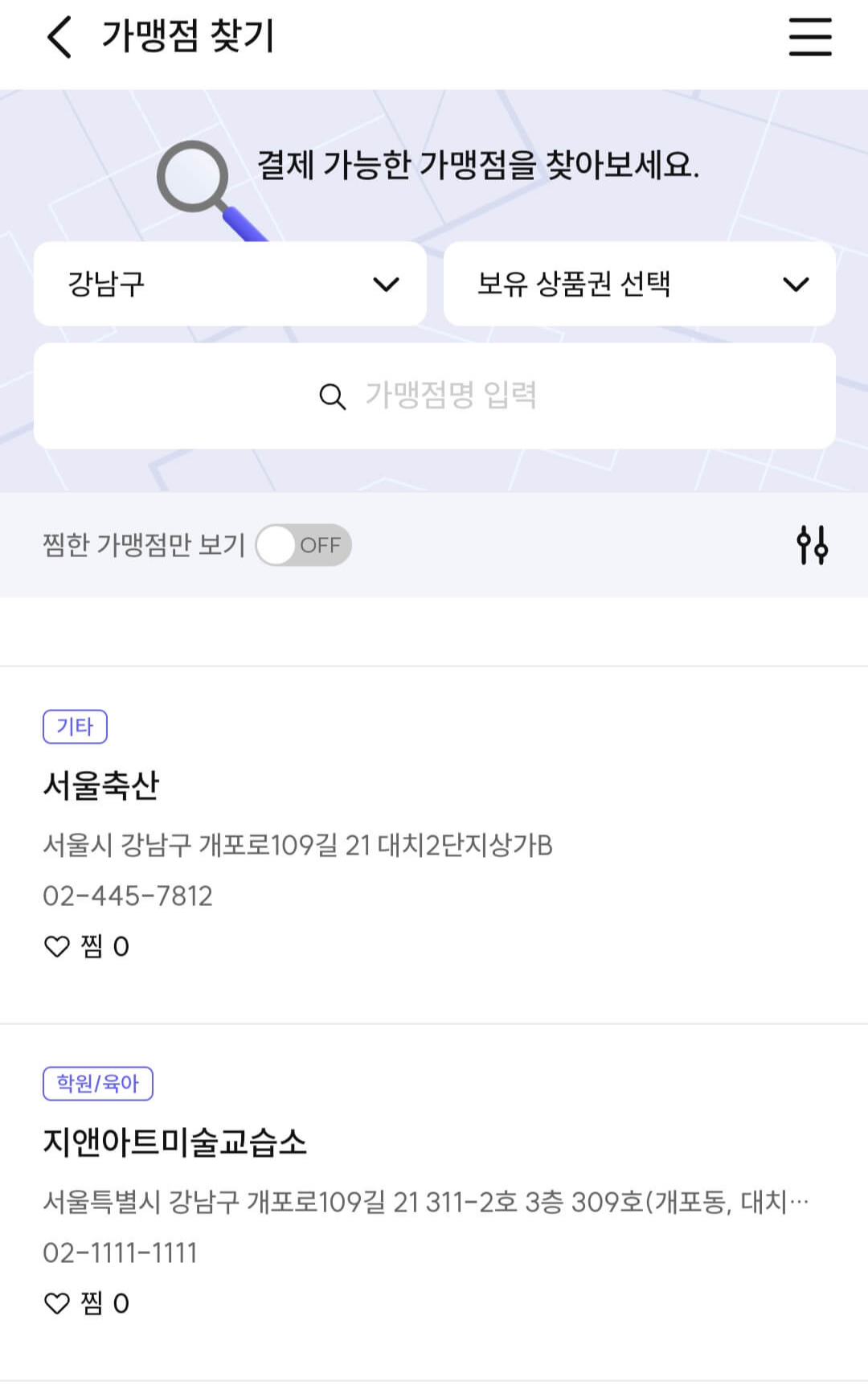 ✅서울페이 앱 실행 > 홈 > 가맹점 찾기 > 가맹점 조회에서 내 주변 가맹점을 조회 할 수 있습니다.
