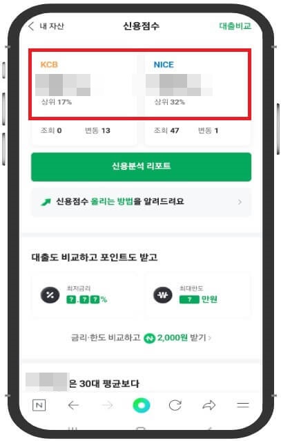 3. KCB와 NICE 점수를 바로 확인하실 수 있습니다.