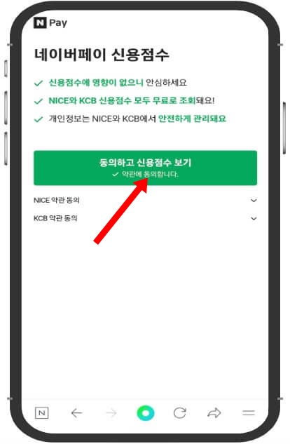 4. 네이버 페이 신용점수 동의하고 신용점수 보기를 클릭합니다.