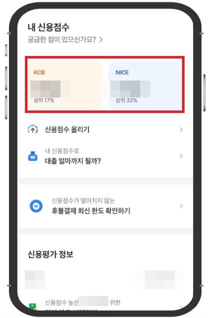 3. KCB와 NICE 점수를 바로 확인하실 수 있습니다.