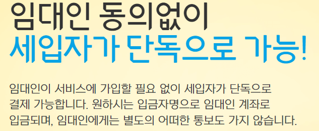 신용카드 임대로 결제서비스 정식 인증 업체로 신용카드로 결제 후 현금을 입금 받을 수 있는 서비스 입니다. 그런데 현금을 입금 받을 수 있는 통장은 본인 통장은 불가하며, 월세 임대인이나 공과금 입금 계좌등 만이 가능합니다.