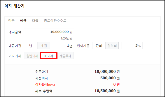 비과세 상품으로 1천만원 예치시 5%금리를 준다고 가정한다면 1년 이자는 50만원이 됩니다.