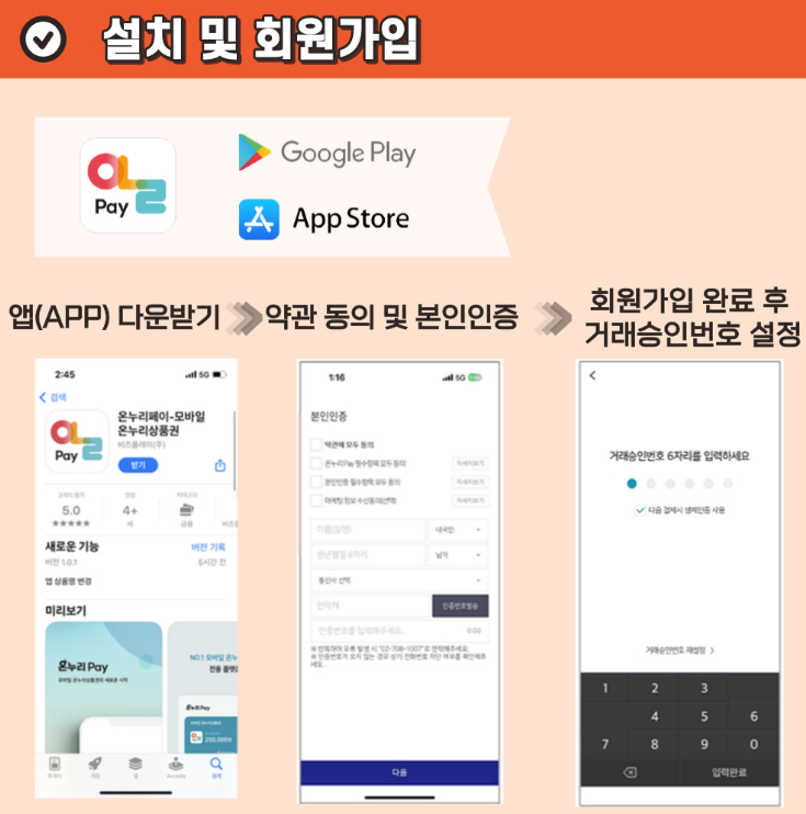 충전식 카드형 상품권 구매를 위해서는 아래링크를 통해 온누리상품권 앱을 다운로드 합니다.