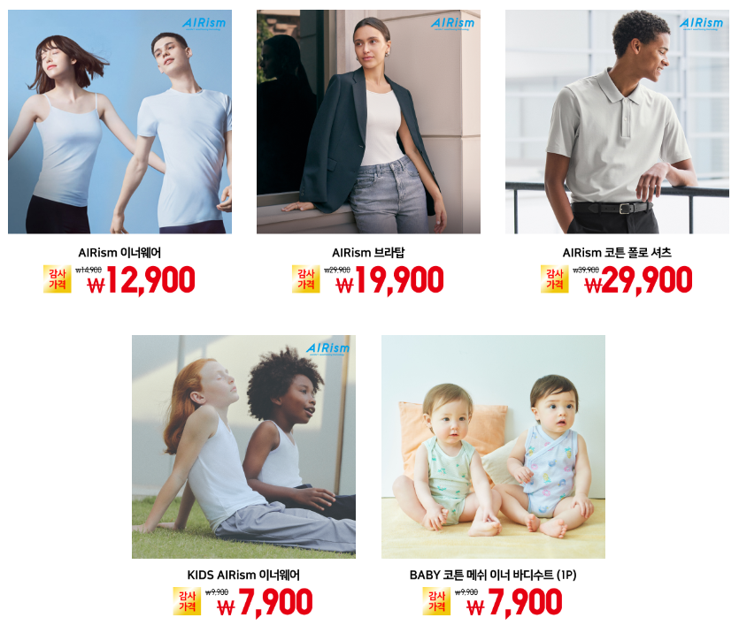 - 기능성 의류: 히트텍, 울트라 라이트 다운, 에어리즘 등 기술력이 반영된 기능성 의류를 선보입니다.