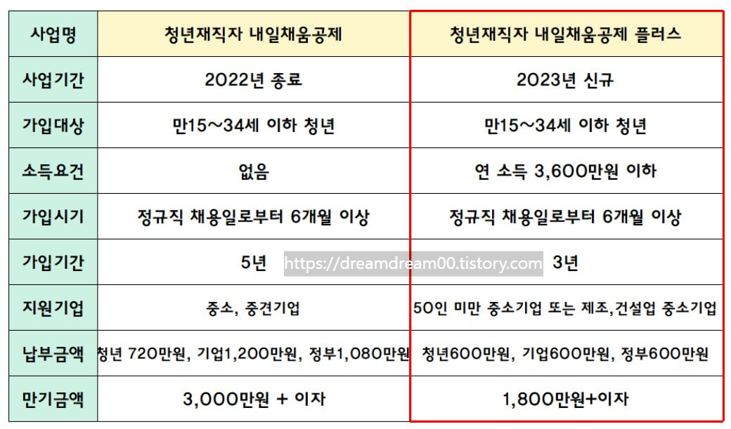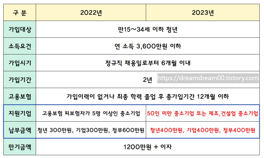 | 최종금액 | 1,200만원+이자 | 1,800만원 + 이자 | 원금+기업지원금+이자 본인 납입금 대비 3배 이상 |