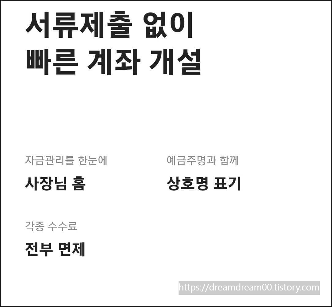 - 이체, ATM, 사업에 필요한 증명서 발급 등 각종 수수료가 면제