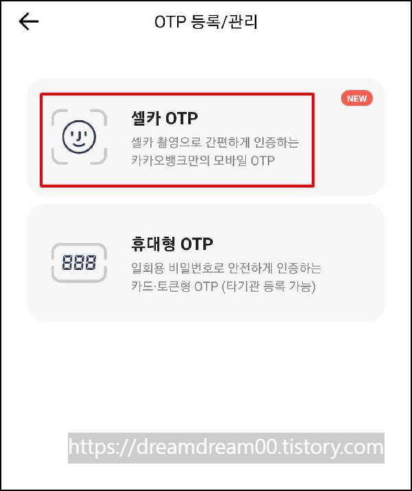 4. 셀카OTP와 휴대용 OTP 중 원하는 OTP를 선택합니다. 저는 셀카 OTP 발급을 선택 했습니다.