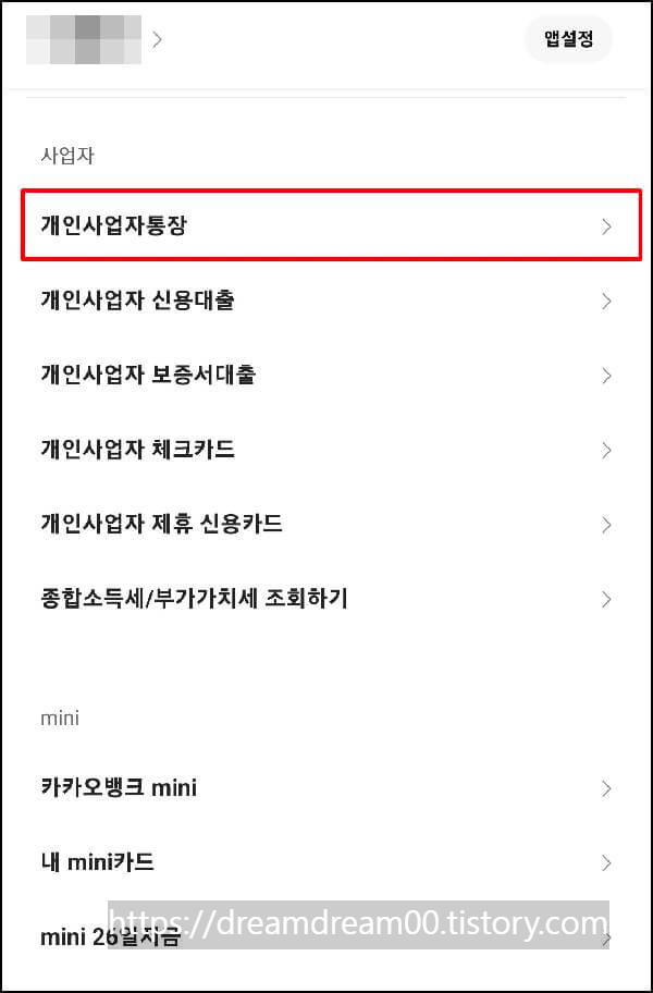 카카오뱅크 사업자통장 및 체크카드 발급방법