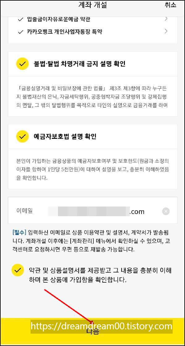 4. 계좌개설 관련 내용을 확인하고 체크한 후 다음을 클릭합니다.