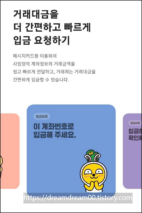 - 귀여운 메시지 카드를 이용해 거래정보와 금액을 빠르게 전달