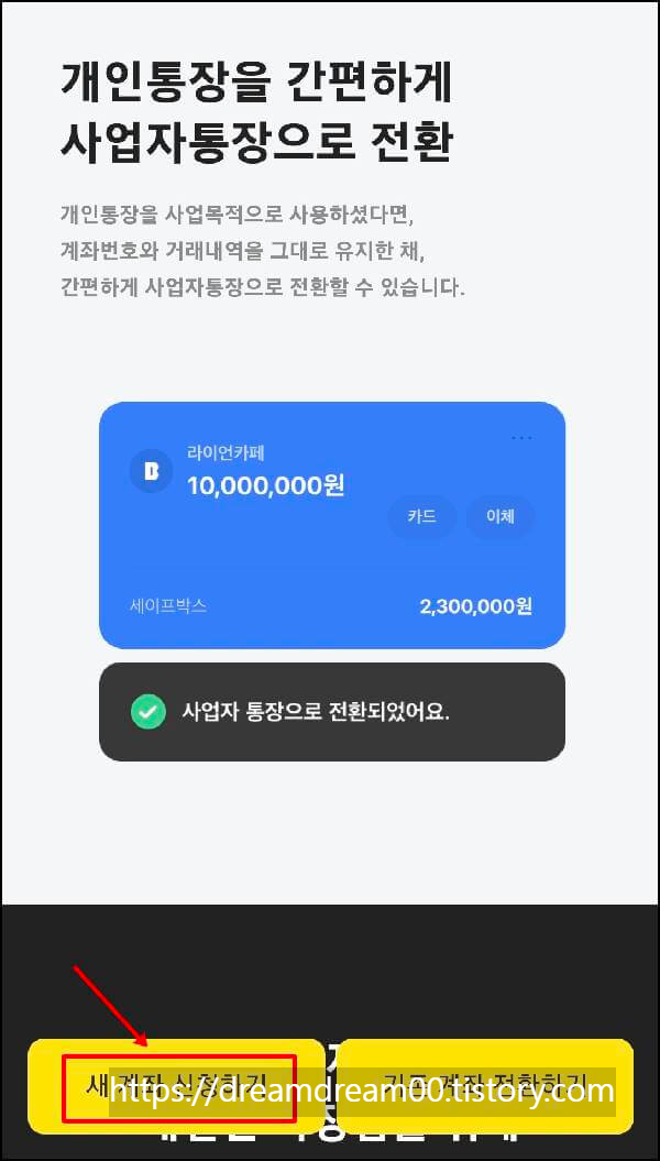 - 기존에 사용하고 있는 개인통장을 사업자 통장으로 변경 가능