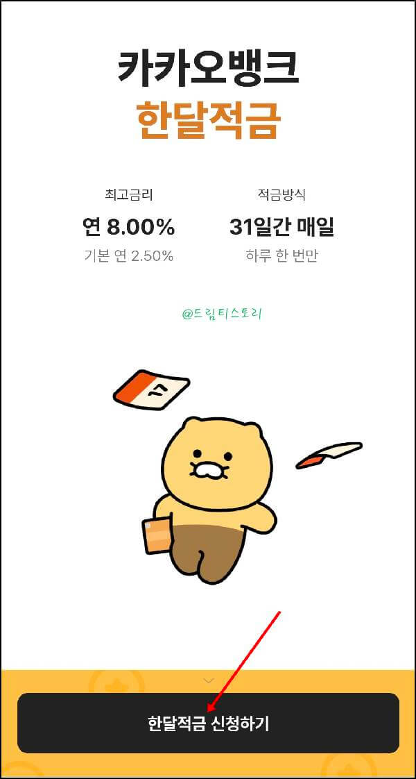 3. 하단의 한달적금 신청하기를 선택합니다.