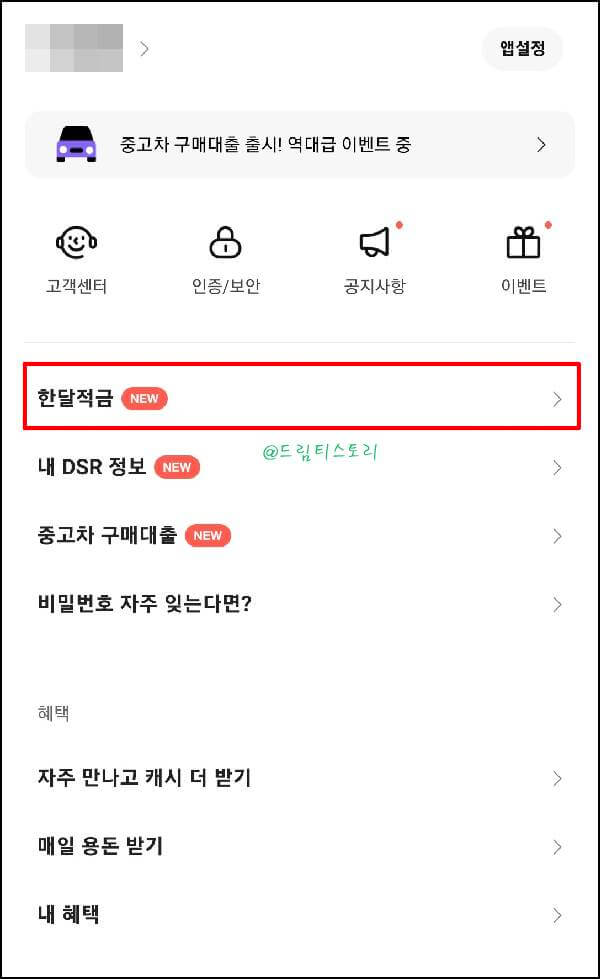 1. 카카오뱅크 오른쪽 하단의 더보기를 클릭합니다.