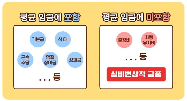 그렇다면 평균임금에 포함되는 항목과 포함되지 않는 항목은 무엇이 있을까요?