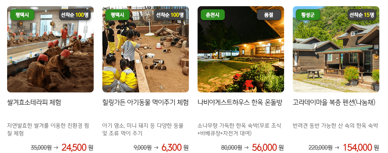 아래 링크를 통해 농촌 여행 상품도 함께 할인 받고 예약하시기 바랍니다. (선착순 진행!!)